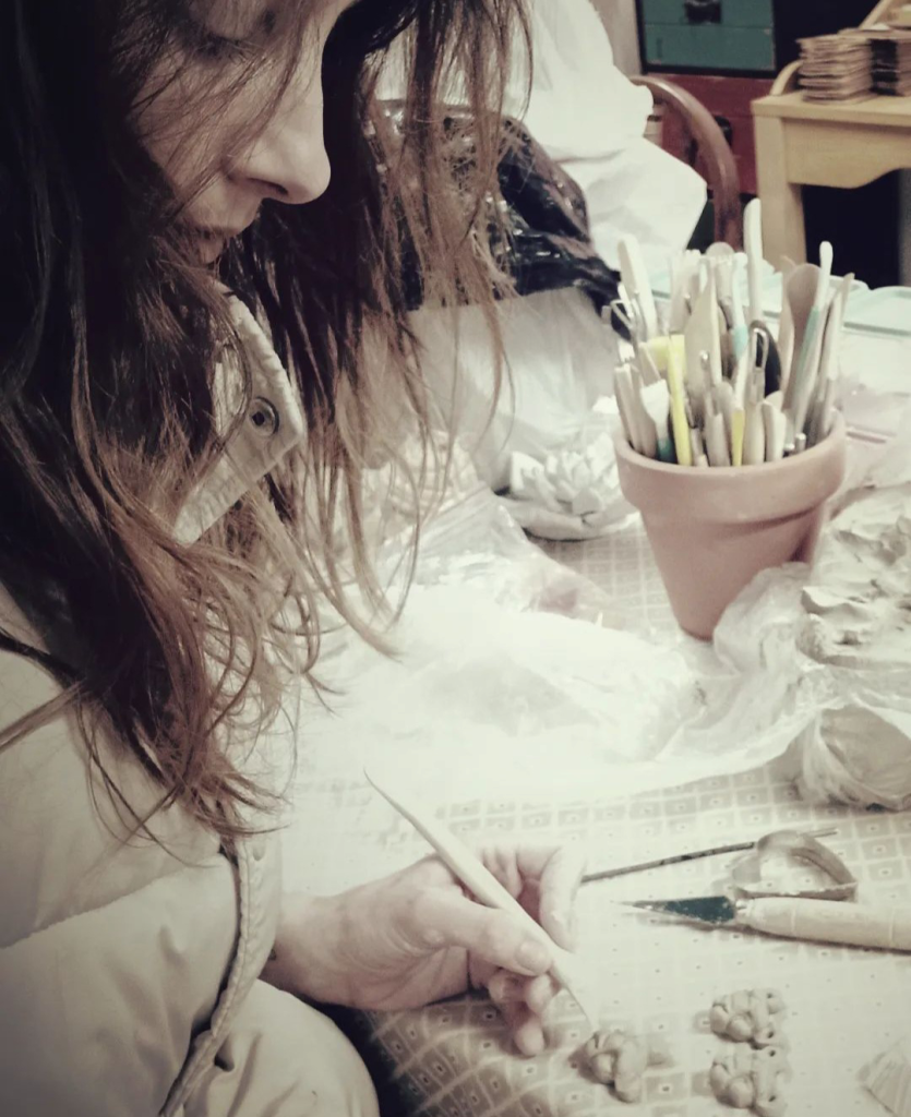 Mi formación como pedagoga, educadora y ceramista influye de manera muy importante en mi deseo de ofrecer camino a esta formación creativa tan maravillosa a través del barro; por ello, además de la venta de mi producto de joyería cerámica y decoración, imparto diferentes talleres en el Centro de Artesanía de la Región de Murcia, colaborando en otras muchas ocasiones con otras entidades, creando sinergia y acercando a todas las personas posibles la calma que nos regala esta técnica ancestral a nuestra persona. La beca Leonardo D’Vinci en Meraner (Bolzano, Italia), en la que tuve el honor de hacer buenas prácticas en una pequeña empresa familiar dedicada a la artesanía, me dio el valor suficiente para enamorarme y convertir la cerámica en mi medio de vida, un trabajo lleno de retos, que os muestro y comparto con mucho amor.